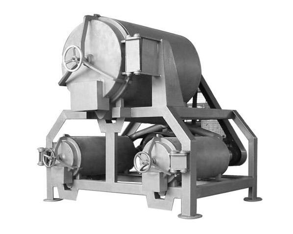 前一工序的物料进入头料桶,主轴驱动叶轮高速旋转,物料由叶轮驱动,筛子被摩擦挤压,使物料的肉、汁、皮、汁通过筛上的小孔与果皮和种子分离,进入第二物料桶,皮和籽被推到轴端,通过排渣口排出。打浆后,可自动清洗。只要改变不同规格的筛分,调整叶轮与筛网之间的间隙,可以改变打浆效果。